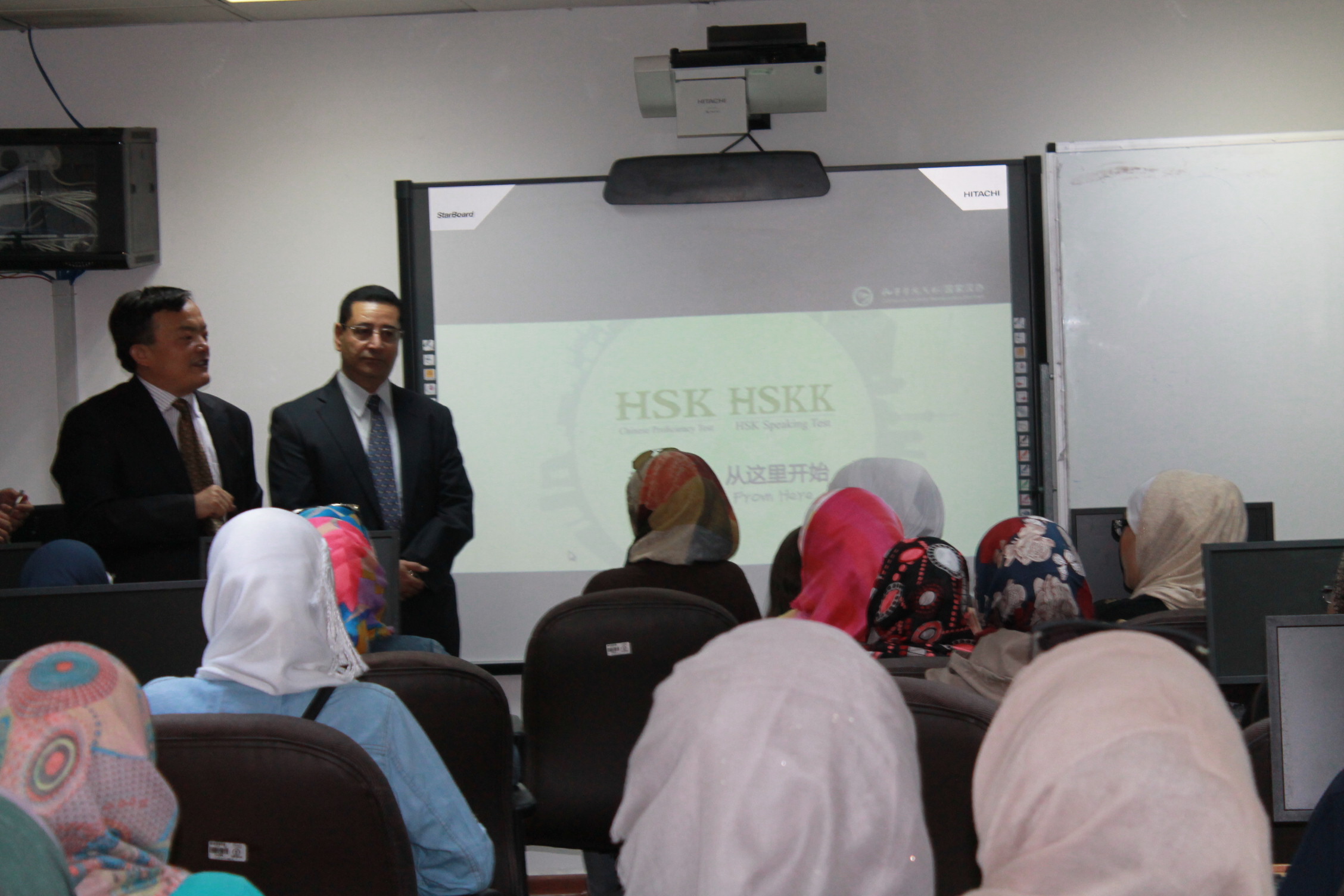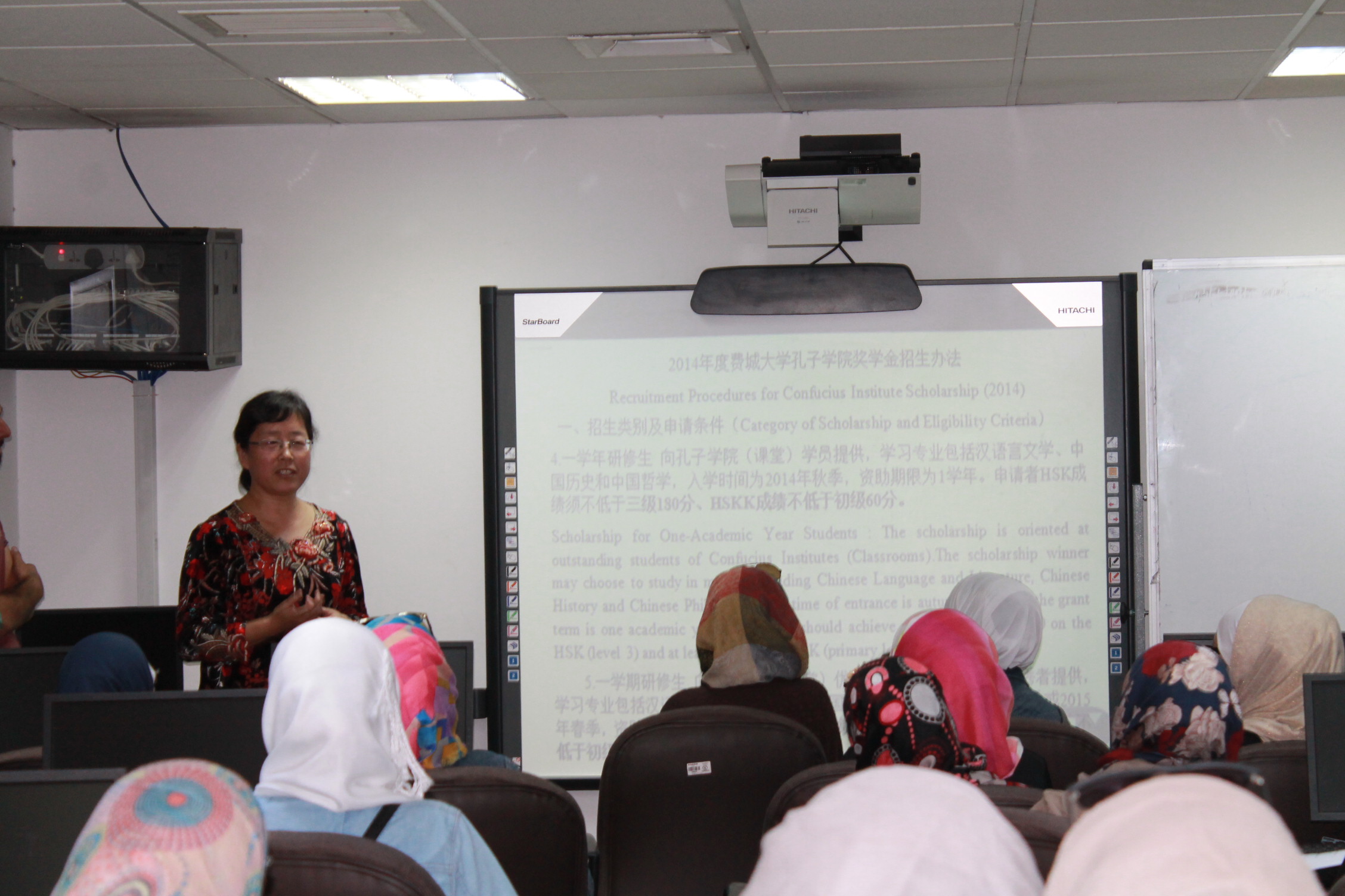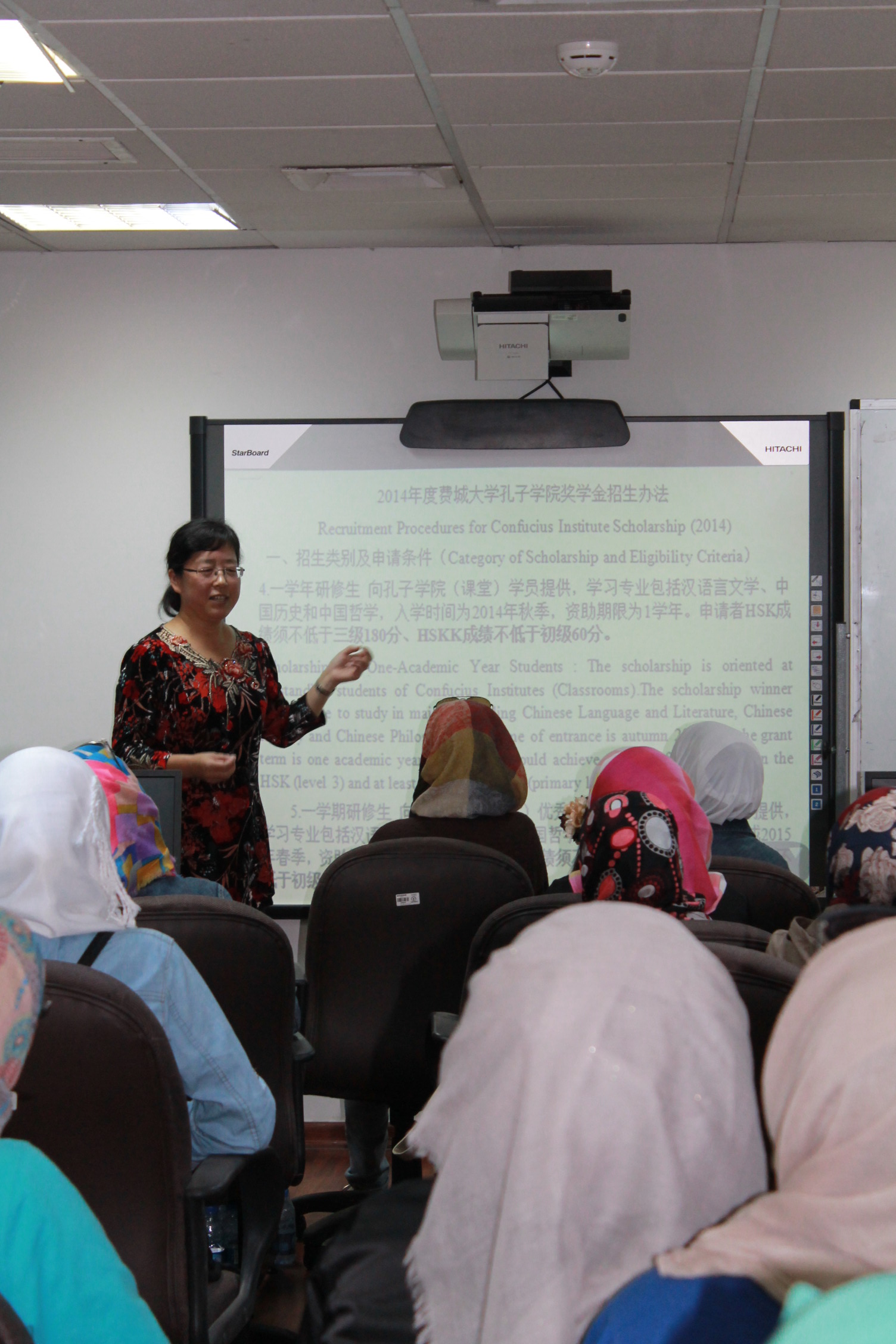 1. The entrance of the activities.JPG2. Dr. Ghazu and Dr. Li Zhiling.JPG3. Professor Wang Baoyun introducing HSK HSKK.JPG4. Professor Wang Baoyun at the introduction of Hsk Hskk.JPG