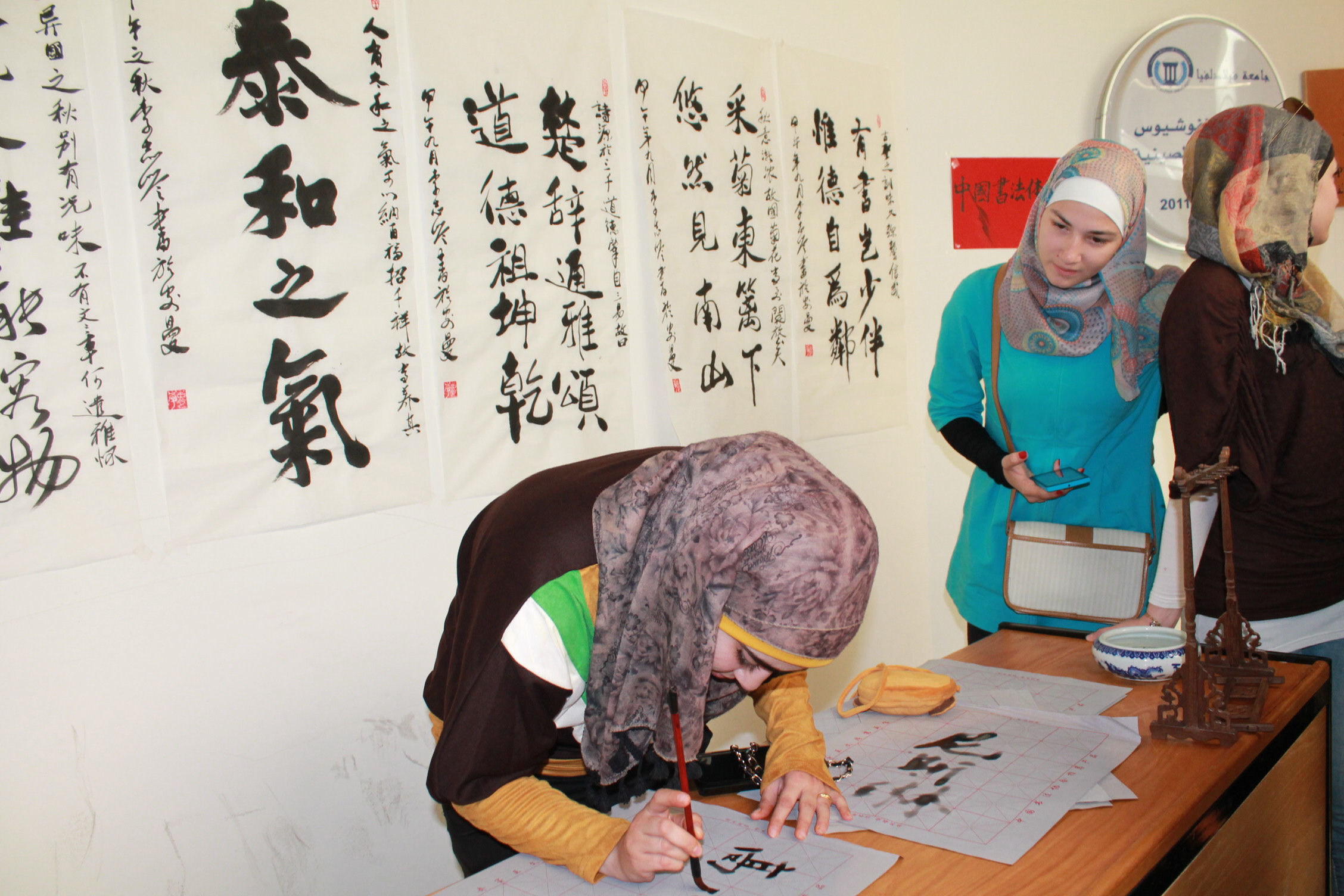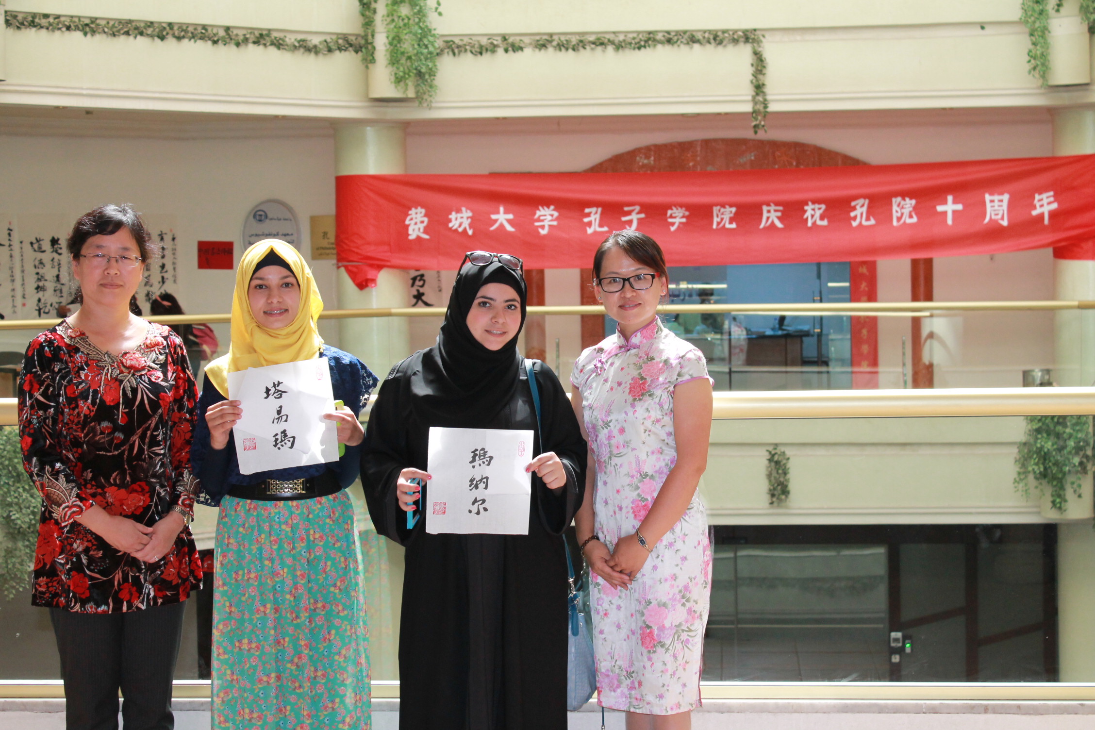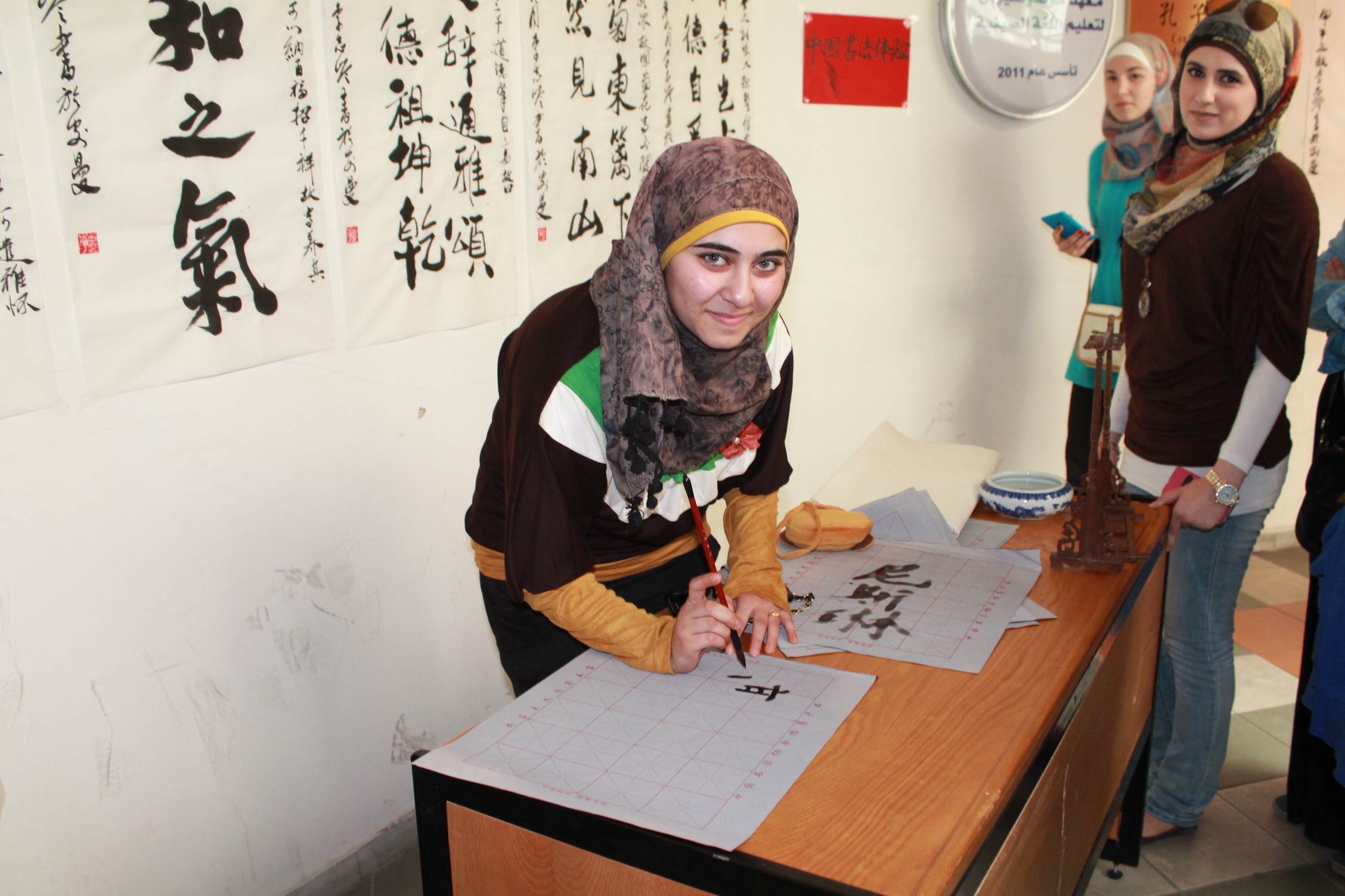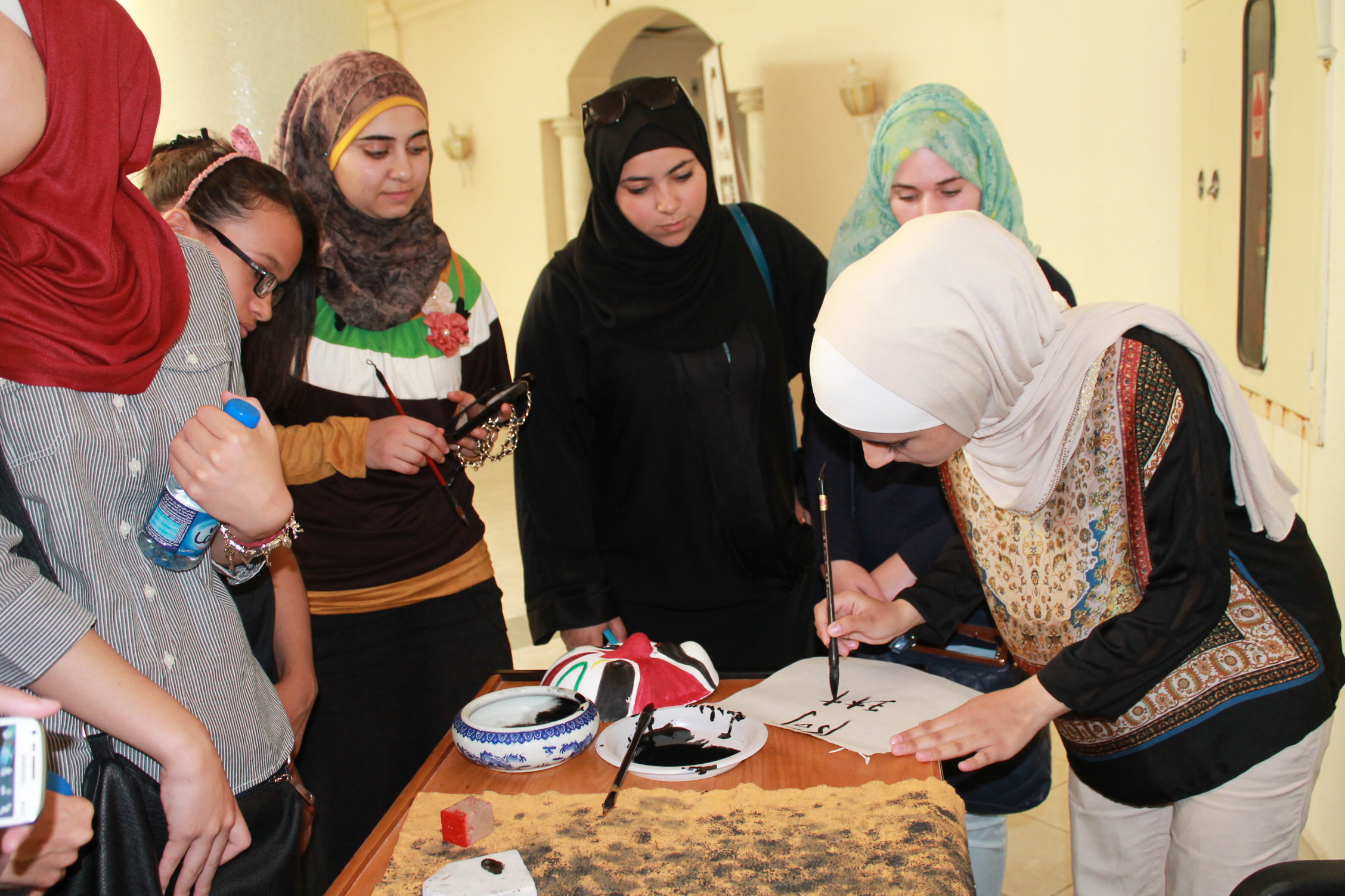 A student and her work of Chinese calligraphy.JPGA student writing Chinese calligraphy.JPGA student writing with Chinese writing brush.JPGAnother student trying Chinese calligraphy.JPGChinese director, Dr. Li teaching Chinese calligraphy.JPGParticipants with teachers of Confucius Institute of PU.JPGThe students with their works of Chinese calligraphy.JPGThis is my Chinese name.JPGWell done.JPG