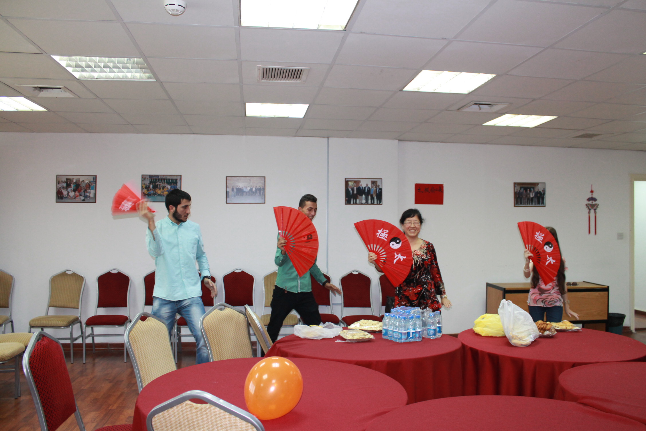 Professor WangBaoyun teaching Taji Fan  dance.JPGTaji Fan dance in action.JPGWe are all fans of Taji Fan.JPG